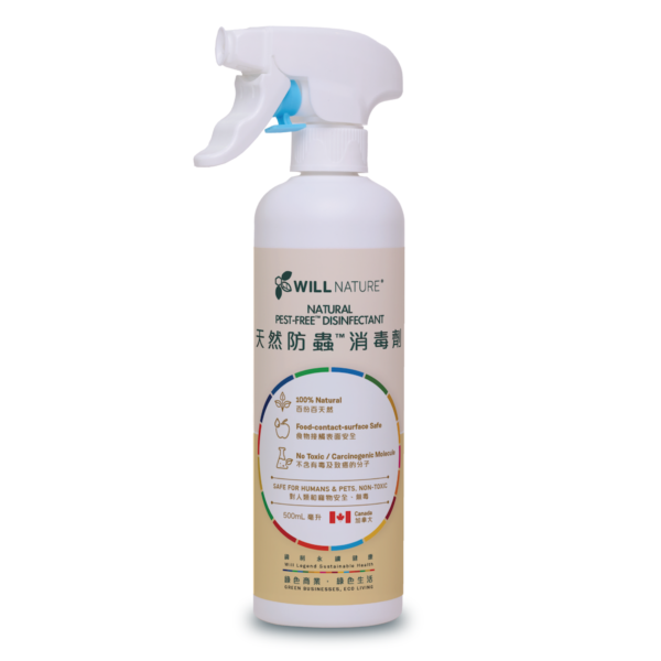 WillNature® Natural Pest-free™ Disinfectant is 100% natural, non-toxic, no carcinogenic molecule, food-contact-surface safe. Suitable for both indoors & outdoors.